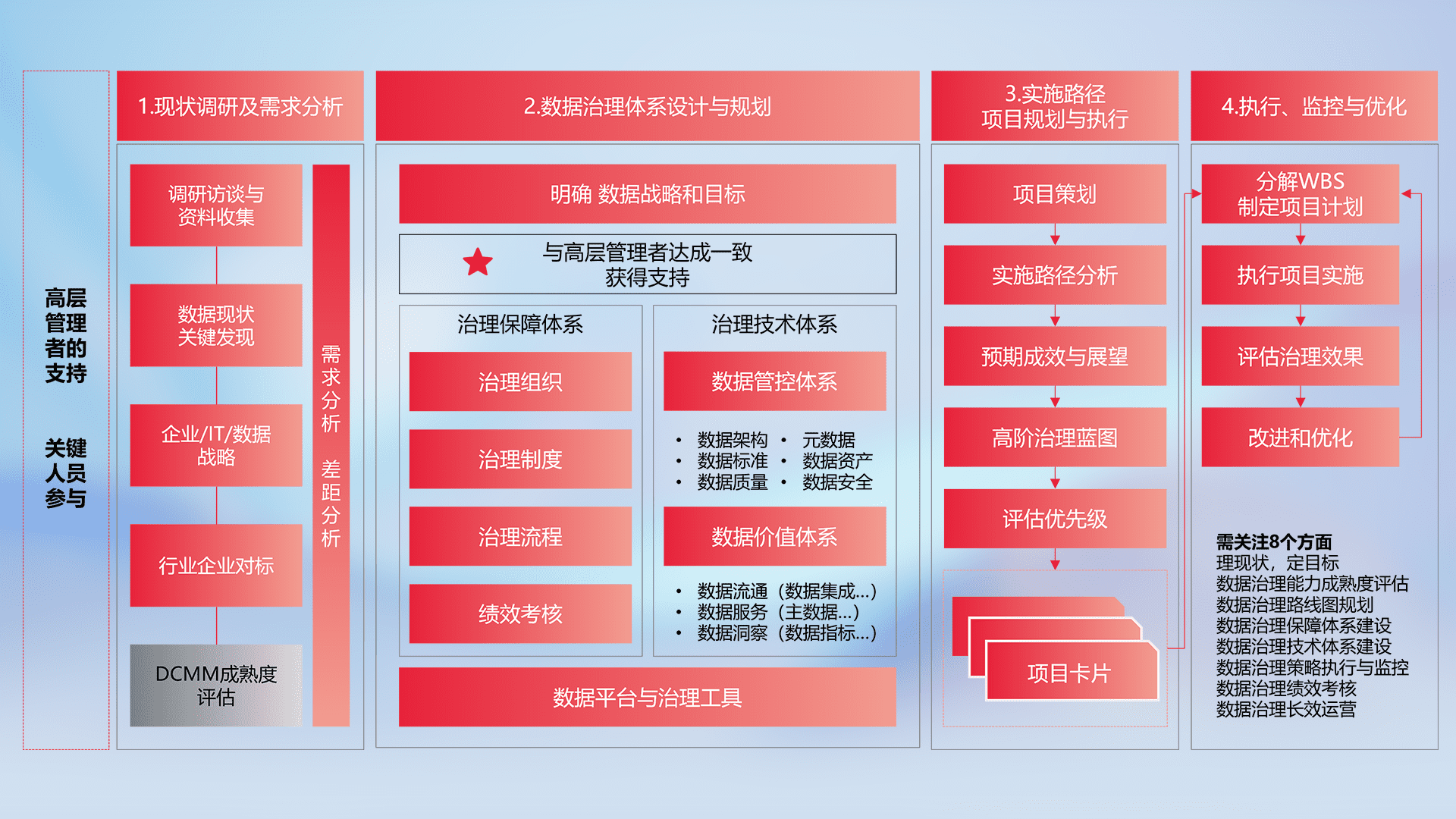 制定并执行统一的数据标准,,,,规范数据定义和格式,,,,消除冗余和不一致性,,,,实现跨部门和跨系统的数据一致性,,,,为企业提供标准化的数据基础。。。